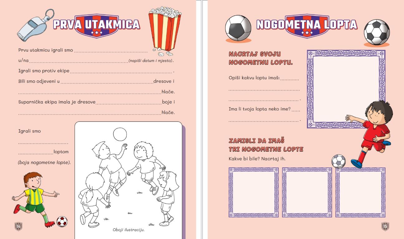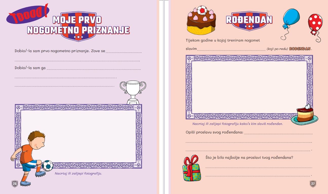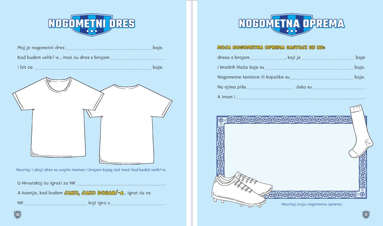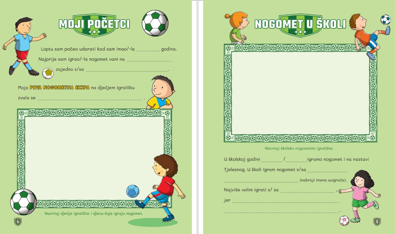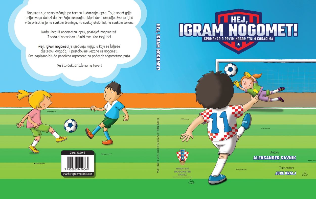 "Hej, igram nogomet!" interaktivna je knjiga uspomena u koju djeca bilježe događaje i nezaboravne trenutke prvih nogometnih godina. Na 50 stranica, dizajniranih na djeci privlačan način, mališani mogu zalijepiti fotografije, nacrtati ilustracije, obojiti crteže i napisati važne informacije.